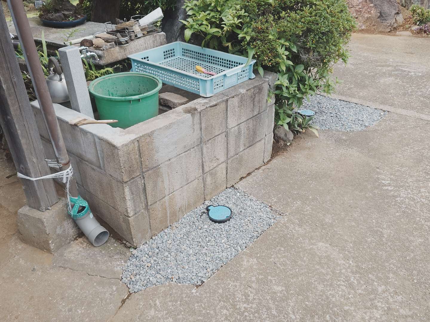 現場は築50年以上の非分譲地で、母屋・離れ・農地が一体となった広い敷地。水道水ではなく井戸水を利用し、生活用と農地散水の両方をまかなっていました。配管図面はなく、配管経路は複雑。しかも地盤が砂質で水はけが良く、漏れても地表に水が出ないという厄介な条件。