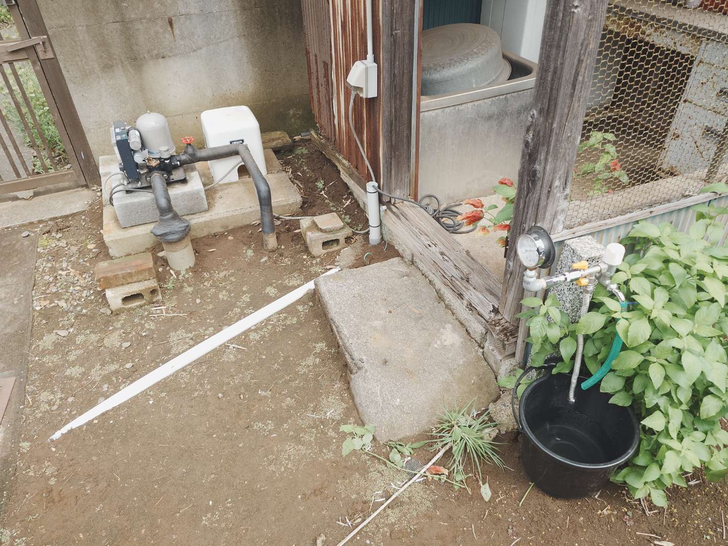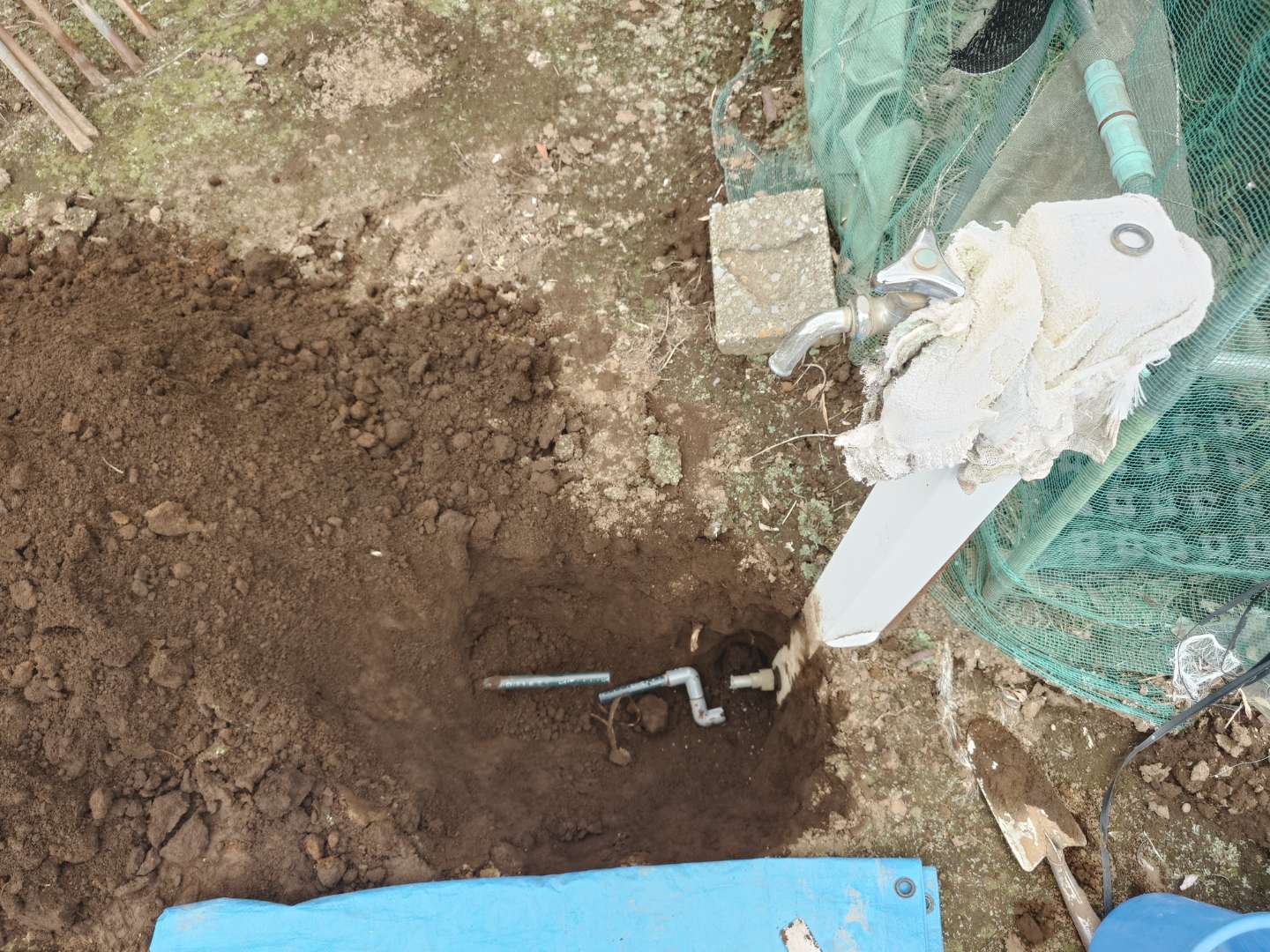 現場は、母屋・離れ・農地にわたり多くの水栓や給水設備が設置されていました。築年数も古く、配管の劣化が進んでいることが予想される環境でした。