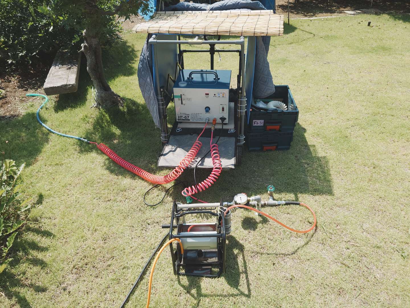 まずは音で漏水の手がかりを探り、その後にトレーサーガスを用いて目に見えない漏水を浮かび上がらせるという二段構えで調査を進めました。井戸ポンプの動きを確認した時点で「どこかで確実に漏れている」という前提で臨んでいます。