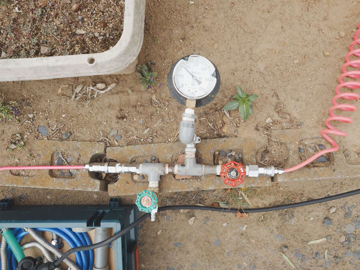 最終的に、音聴調査とトレーサーガス調査の併用によって井戸配管の調査が可能な当社にご連絡をいただき、正式な調査依頼となりました。当社ではまず現地確認を行い、敷地の構造や配管経路を把握したうえで圧力計の挙動を観測。音聴調査で大まかな範囲を絞り込み、トレーサーガス法で確定する段階的な方針を立てました。これにより、他社で調査不能とされた条件下でも、漏水箇所を確実に特定することが可能になりました。